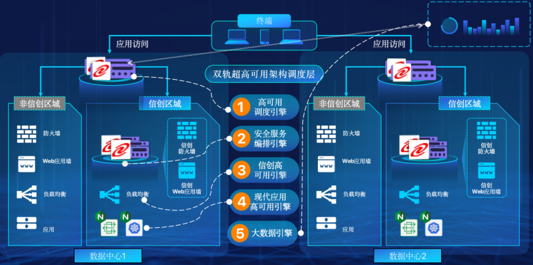 JIUYOU.COM-九游在企业面临自主创新IT基础重构过程中,推出的全新架构双轨超高可用架构(简称DTMAA),在双活数据中心的分区调度基础上,添加每个数据中心内信创域和非信创域的分域调度,来实现分区分域协同的多活双轨超高可用。